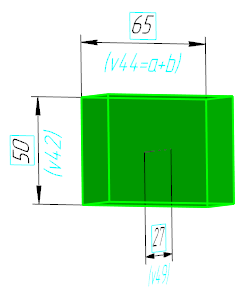 If the value of a numerical parameter of the operation or sketch dimension is set by a constant, expression or negative number, then a value of the variable, in addition to its name, is displayed under the dimensional line of the dimension, for example: v44 = a + b.