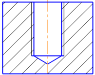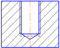 Fitting is used when it is necessary to change the geometry of a base object of a thread according to the selected rated thread diameter.For cylindrical surfaces, the diameter is "fitted" according to the thread parameters, while for conical surfaces, both the object diameter in the base plane and the cone angle are "fitted". An example of fitting when building a thread in a simple hole is shown in the figure.