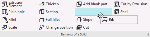 To change the position of the command on the toolbar, place the cursor on it, click the left mouse button, hold it down and move the mouse in the desired direction. The cursor will take the shape of a quadrilateral arrow