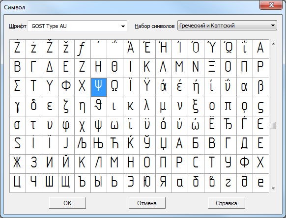 To insert a selected symbol into the current cursor position, press OK. You can also double-click on the left mouse button at the required table cell.