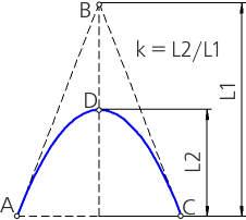 Coefficient k (engineering discriminant) — the ratio of the part of the median of the triangle ABC located under the curve to the full length of the median of the triangle (figure a).