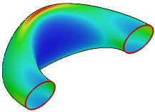 Curvature map allows to visually check the surface curvature using a color palette. The selected objects are colored according to the calculated curvature values. Values in the red part of the spectrum indicate the maximum curvature in the current curvature value range, while those in the blue part indicate the minimum. By default the curvature map displays the full range of curvature values. It is calculated automatically according to the preset curvature values for the selected objects.