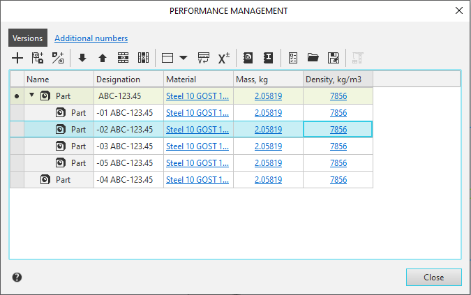 To perform various actions with the versions, the page is used Versions. Working with additional performance numbers is performed on the page Additional numbers.