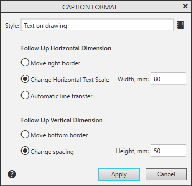 This dialog appears on the screen after calling the Format - Caption format... command