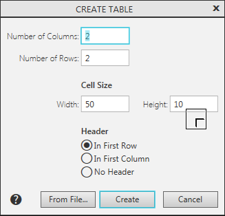 To continue working with the table after setting all the parameters, press Create button. The dialog will close. The table will be displayed in the mode of setting the table of the title block.