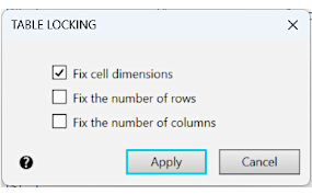 Enable this option so that the cell sizes of the table cannot be changed. |
