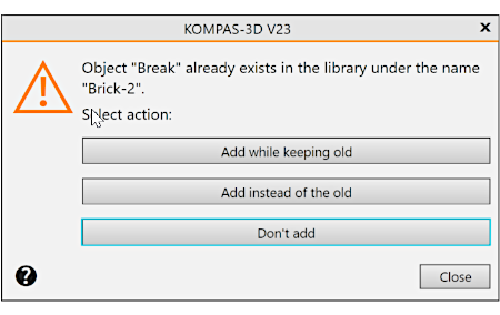 Refusal to place an object in the library. Refusal to place the newly created object in the library means the loss of all changed settings. Since in this case the placed object is not yet used in any document, it is more expedient to add it with the existing one. |