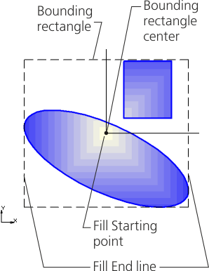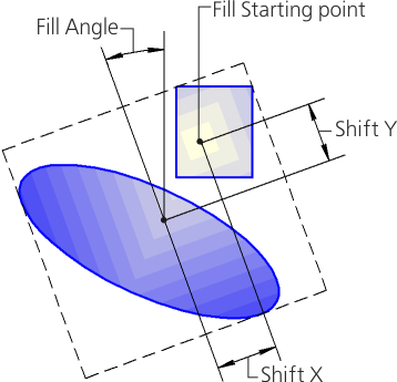 Fill Starting point is the point at which the initial color is set. The position of this point can be changed by shift relative to the center of the bounding rectangle or contour. If there is no shift, then the starting point lies in the center of the bounding rectangle or contour.