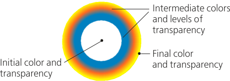 Radial fill before and after adding multiple colors and transparency levels