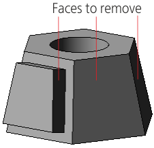When working with a solid consisting of multiple parts, you can delete faces from some of them. These parts are transformed into shells with a hole, and the rest are transformed into closed shells. |
