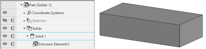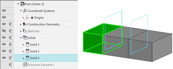 You can manage the set of solids created by cutting. You can select the solids to keep in the model and the solids to delete. You can do this in the process Modifying a Set of Solids. Details...