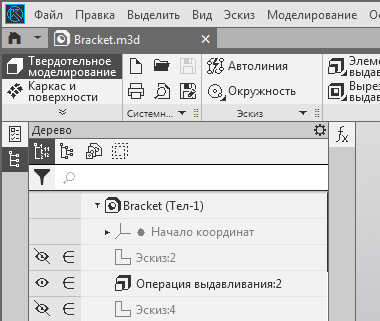 By default, all toolbars displayed in the left part of the graphic region, and the buttons that control their state are combined into a block, docked to the left-hand border of the KOMPAS-3D window.