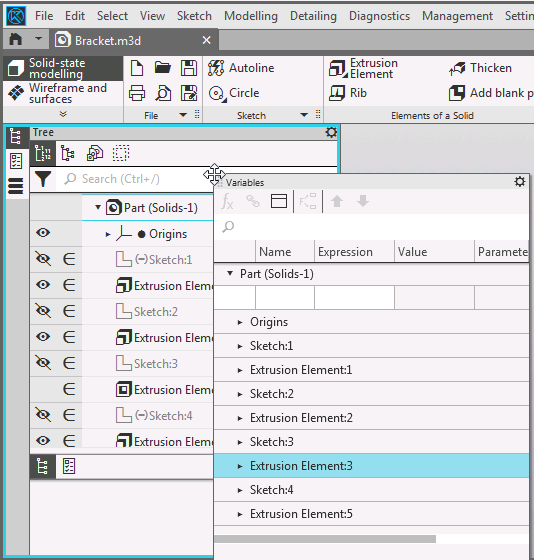 The extracted panel can be left in the floating state.Additionally, it can be docked to the border of the KOMPAS-3D window (either the right or left), or to another, non-floating, toolbar.