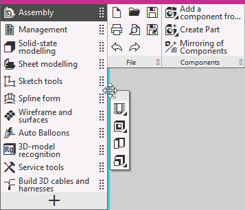 To place the toolbar in the graphic area, drag it to the required border using the movement marker