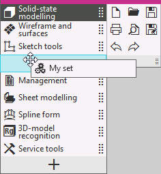 6.Click the left mouse button, hold it down and move the set to the list of sets of the Tool Area. In the process of moving, the cursor appears as a four-sided arrow