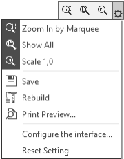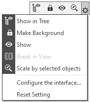When the context bar appears on the screen, it displays only those buttons commands of which can be called at the moment. However, the setup menu list contains all the bar commands, both available and unavailable. Unavailable commands in the list are shown in light gray.