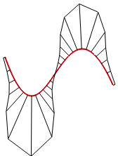 When the command is first called, the graphic of curvature is displayed on a phantom with calculated optimum (default) parameter values for the current model scale. You can change the plot view by adjusting the "needles" density and display scale. Parameter configuration is performed in the Curvature plot section. For a detailed description, see the sections below.