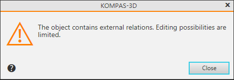 Example 3. The part was created in the context of the main model by combining other – initial – parts. Later, when editing a part on a separate tab (outside the context of the main model), its original parts are not available (since they are in another file). Therefore, when editing a part on a separate tab, you can only delete the element obtained by the "Join Components" operation. Changing the shape of this element is possible only when editing in the context of the main model.