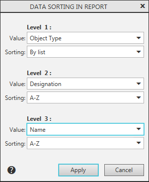 Data Sorting in Report Dialog |