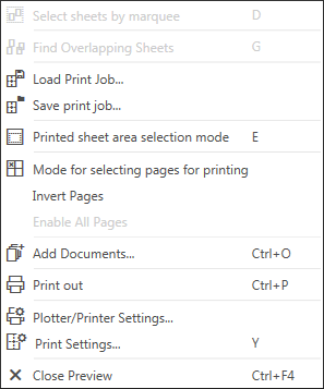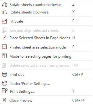 Please note the terms of this part of the manual: a print page is paper sheet displayed in the print field; a document sheet is a sheet of single-sheet or multi-sheet document selected for preview. A bounding rectangle of the image is the document sheet for a fragment or a model.