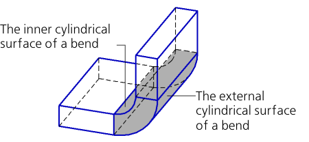 Non-flat portions of the sheet part are the bends. In most cases, bends have a cylindrical shape, i.e. outer and inner surfaces of the bend are cylindrical. In addition, these surfaces can be conical and ruled.