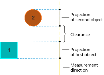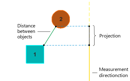 Measuring distance between objects in the specified direction.