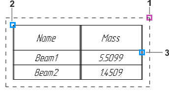 To change position of a caption or a table in the graphic area, you can use the defining points as described further.
