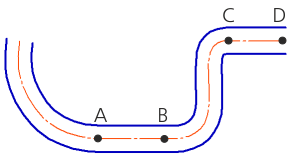 For example, a multiline with vertices A, B, C, D is built in the document (Fig. a). You need to add curves to the beginning and middle (between the vertices B and C) of this multiline (Fig. b).