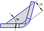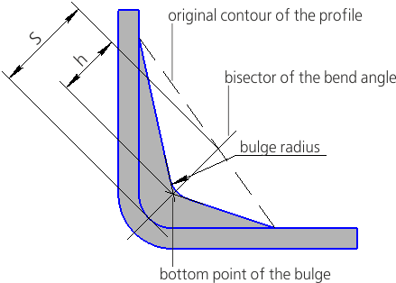 2.Select a method to specify the bulge depth and specify a parameter for the selected method. The depth is determined by the distance from the point of intersection of the bend angle with the original contour of the profile to the bottom point of the bulge (see figure below).
