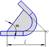 Bulge parameters are measure in the plane perpendicular to the edge of the bend on which the strengthening edge is being created. The scheme of plotting the bulge is shown in the figure.