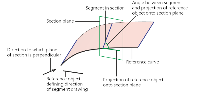 Linear surface by curve and direction is formed by moving a segment along the selected curve, where the start vertex of the segment lies on the curve and the end vertex shifts in the section plane such that the segment forms a specified angle with the projection onto this plane of the indicated straight object. An angle between a segment and a projected object, as well as the length of the segment, may be constant or changing according to a given law. The plane of the section in each position is perpendicular to the specified straight-line direction or curve.