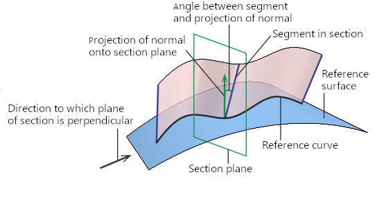 The angle between a segment and the projection of the normal onto the section plane, as well as the length of the segment, may be constant or vary according to a given law.