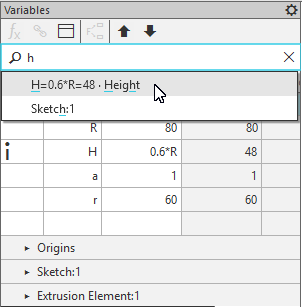 Searching in the Variables toolbar