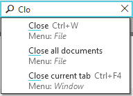 For each command, the name, the icon (if available), the key shortcut to invoke (if available) and the path to that command in the Main menu are displayed. If the command is not available, then it appears in the found list in light grey color, and in case of a on-off switch command, the state is indicated by the icon color or presence of a "tick".