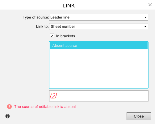 a list that allows you to specify what will be the content of the link. The set of link content options depends on the type of source. For most sources, a link to text, zone designation and sheet number is possible. If the source type is View, then link building has certain features (see table Variants of Contents of a Reference to a Drawing View). If the source is located in several zones, then when you create a link to the zone designation, the source location is considered to be only one of the zones (see table Defining the zone in which the source of reference is located). |