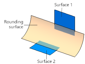 Straight edge trim — the lateral edges are formed by trimming the surface of the rounded with section planes along the boundary edges of the specified surfaces. For each surface from a pair of boundary edges, the edge that is the farthest relative to the boundary edge of the other surface is selected. |