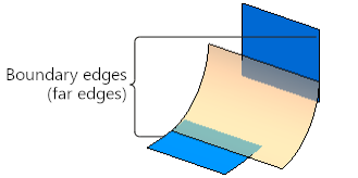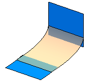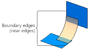 Straight cut near edge — the lateral edges are formed by trimming the fillet surface with section planes along the boundary edges of the specified surfaces. For each surface from the pair of boundary edges, the edge that is closest to the boundary edge of the other surface is selected. |