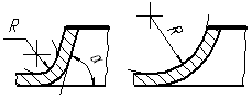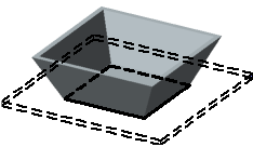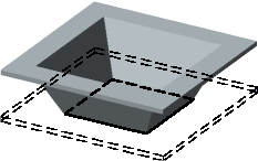 KOMPAS-3D employs simplified modeling of an open pressing with sloped or bent side walls: it is considered by convention that the resulting face shown in the Figure by a thick line is parallel to the base face. |