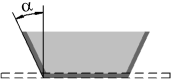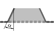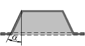 Examples of building open and closed dimples with sloped side walls are shown in the tables. The direction of adding material to side walls in all examples is inward; α is the slope angle of side walls; the original position of the part is shown by a dashed line, and the face which retained the shape and dimensions of the profile as a result of building is shown by a thick line.