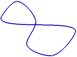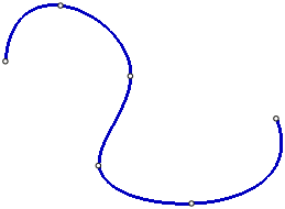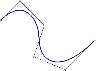 Boundary points of the spline coincide with the terminal vertices of the broken line; the first and the last segments of the broken line are tangential to the spline in the start and in the end points, respectively. Other vertices of a broken line are the poles of the spline. The points of the spline do not coincide with the poles, but are located at some distance from them. This distance depends on the weight of each pole.