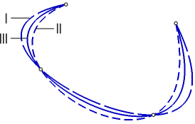 I – Linear, II – By chord distance, III – Centripetal