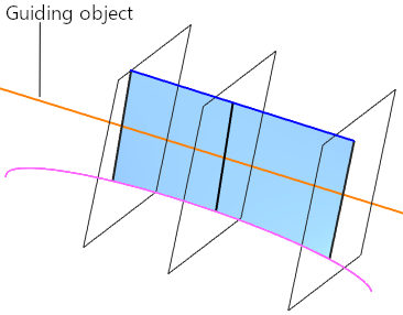 Group of methods By object While moving the segment along the guiding curves, it is in the plane perpendicular to the given straight-line direction or curved line. The group By object is absent in the Parameter panel if a point is specified as one of the guiding curves. There are two options for the segment movement. |