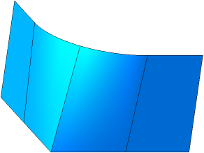 •If at least one of the guiding curves is a multi-segment curve or chain of curves, then the surface is split into faces using edges; each of these edges originates from the vertex of the guiding curve.
