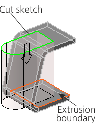 is performed perpendicular to the face on which the cut sketch is built, or to the face specified for construction of a round hole. If the hole includes a bend, it does not pass to that bend as a "wrapper".