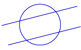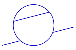 In the figure to trim both segments those portions were specified which were located inside the circle. However, the upper straight line was selected in the mode of retaining the selected portion, and the lower one in the mode of deleting it.