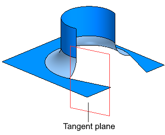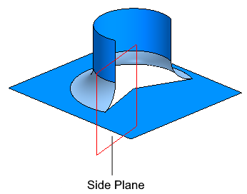 By default, the switch is in the position Bottom plane, in which case the original surface is trimmed along the intersection curve with the plane containing the side edge of the fillet surface, until it meets the boundary curve of the fillet surface.