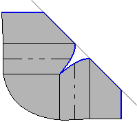 You can enable simplified flat pattern contour when configuring the flat pattern parameters in the Additional parameters section using the Simplified Corner Treatment option. With the option enabled, lateral sides of extensions of adjacent bends are extended to their intersection line.