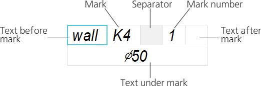 To add the text of the mark/reference designation, use the Subprocess of text input.