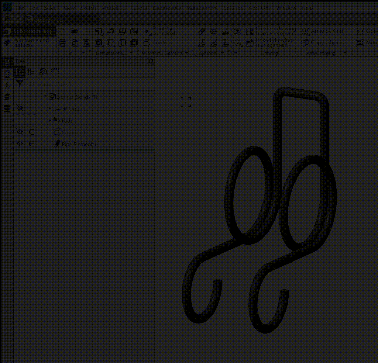 3.Added commands Pipe element and Cut with a pipe element. They perform operation along a trajectory with an automatically formed section in the form of a circle of a given diameter. The trajectory is specified by the user. The pipe may be solid or thin-walled. In the latter case, either the wall thickness or the second diameter value must be entered.