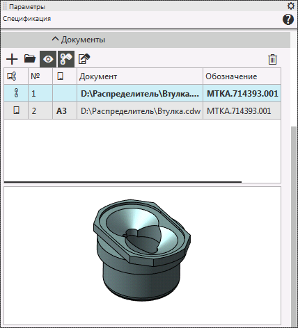 Объект спецификации можно связать с документом КОМПАС-3D. Эта связь позволяет передавать данные из документа в соответствующий ему объект спецификации.